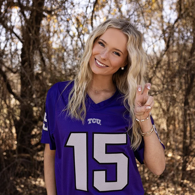 Maddie Purvis loves to play piano in the TCU Symphonic Band, sing as a choral scholar, compose music, play flute with the North Texas Symphony Orchestra and serve as section leader for the cymbal line in the TCU Horned Frog Band. Maddie is an active member of Tau Beta Sigma and Order of Omega as well as TCU Flute Society. She is also involved with TCU Society of Composers Inc., and the TCU Music Educators Organization. She is excited to guide prospective students in their journey to become Horned Frogs and to make an impact in the TCU community.
