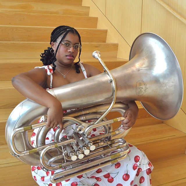 Zoie Pilate plays tuba in the TCU Symphonic Band & Tuba-Euphonium Ensemble, baritone in HFB, and Bass Trombone in Jazz Ensemble 2. She also sings in Vox Resonare. Outside of ensembles, she is a member of Theatre TCU Black Excellence, Secretary of Tuba-Euphonium Society, and President of Black Musicians Association. She is very excited to connect with prospective students and show how amazing the School of Music is.